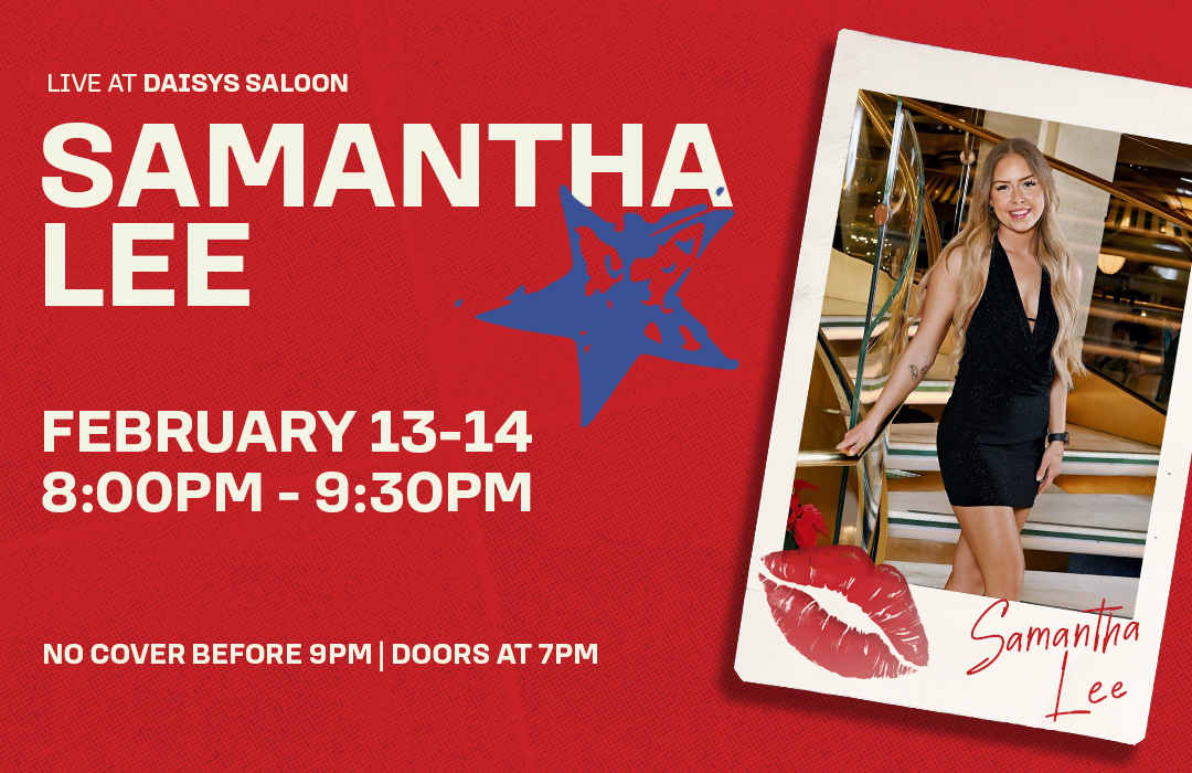Join us February 13-14 for live music with Samantha Lee from 8:00pm - 9:30pm. Doors open at 7:00pm. No cover before 9:00pm.